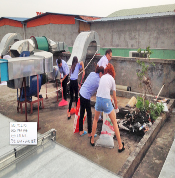常言道:一分耕耘有一分收获,劳动能够使人创造美好生活。由于日积月累公司车间楼顶堆满了废弃物品,环境卫生恶劣,也存在严重的安全隐患。为全面提高公司环境卫生质量,创造舒适、优美、整洁的工作环境,公司展开了全员清扫大行动,用我们勤劳的双手给众嘉的家人们带来健康良好的工作环境。 2017年6月3日下午18点在汪总经理的带领下,集结了众嘉将近100名管理人员和职员利用下班后的时间开展了楼顶卫生大清理。天气虽然炎热,但阻挡不了大家的积极和热情。
